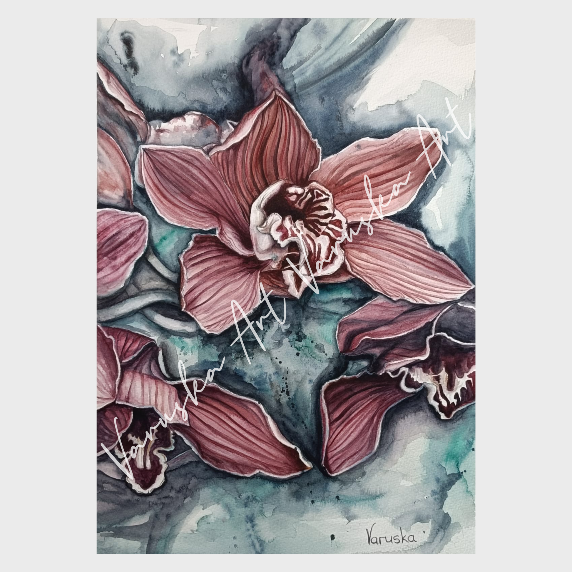 Beautiful and bold orchid composition in watercolour.
